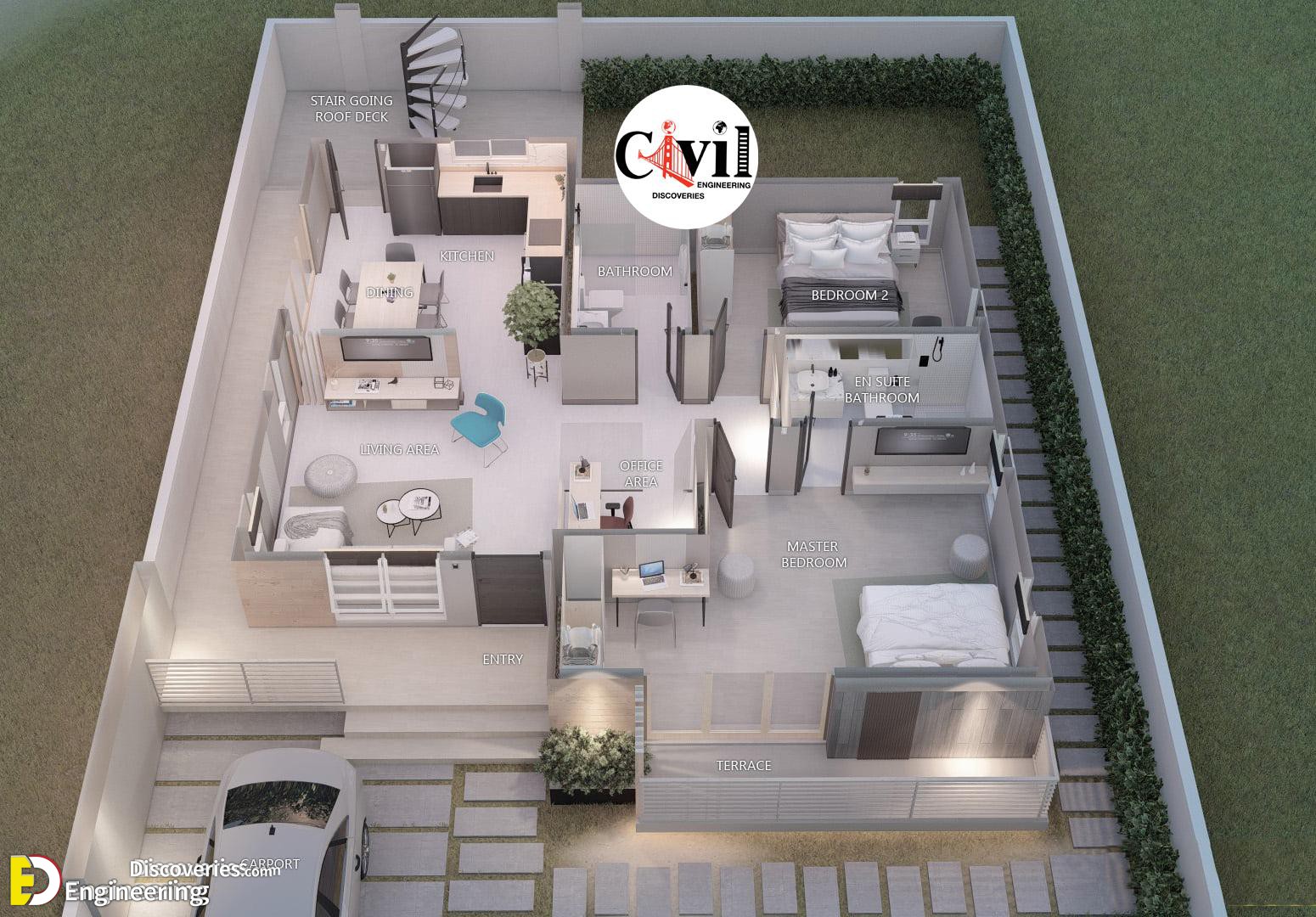 Up next Amazing Bedroom Design Ideas With Attractive Headboard 453 Shares 0 0 0 0 0 0 0 Author Engineering Discoveries The house has Total floor area: 159 SQ.M. Living area Kitchen Dining room 2 Bedrooms 2 Bathrooms Laundry area Terrace Roof deck Click Here To See More House Design With Plans Share this