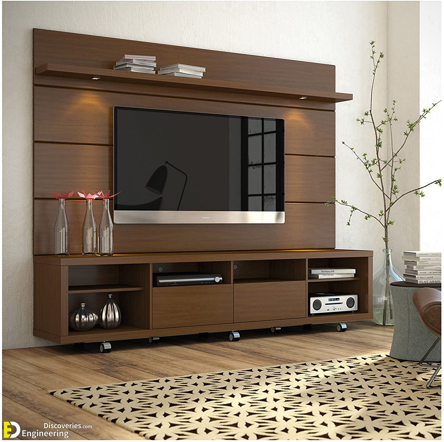The wall always is the perfect place to make your own work by decorating it. It is just like canvas, so you can do everything to make it beautiful with your decoration. The wall usually fits with some kind of furniture just like a shelf, TV stand, desk or even dresser and many more. This time, the wall unit is coming by the long single shelf hanging at the wall and the desk that is placed on the floor. Check out 30 cool and creative wall tv ideas to beautify your room.