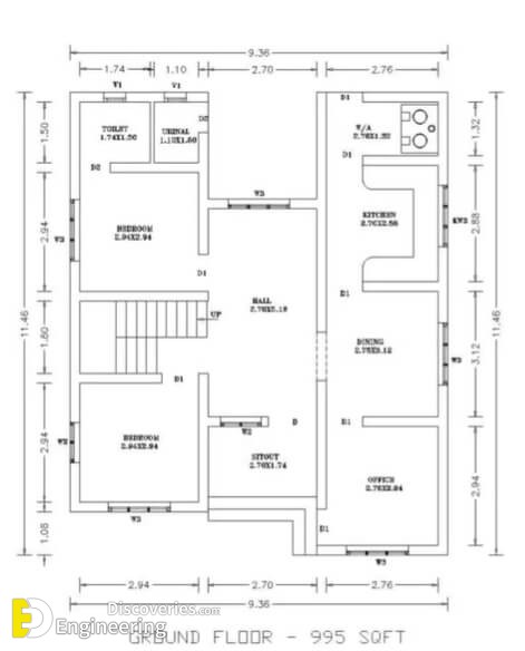 Up next Top 35 Modern And Beautiful Wooden Main Door Design Ideas Share 0 0 0 0 0 0 0 Author Engineering Discoveries The house has Total Area: 995 Square Feet Sit out Living hall Dining area 3 Bedroom 1 Attached bathroom 1 Common bathroom Kitchen Stair room Click Here To See More House Design With Plans Share this