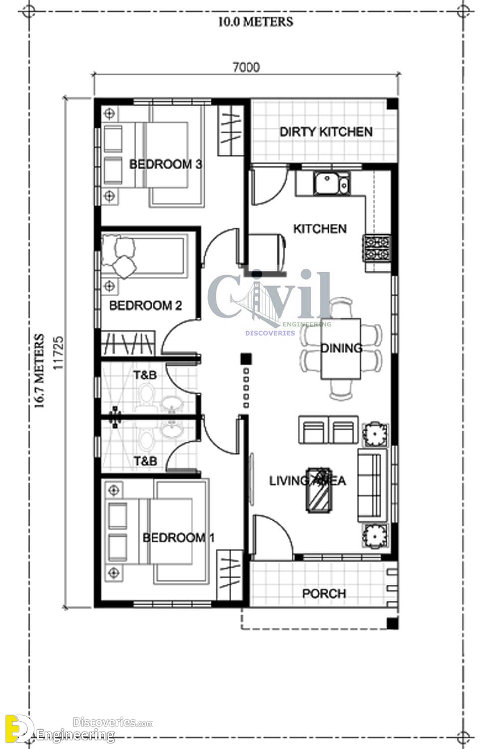 Up next Main Differences Between Architect And Civil Engineer’s 223 Shares 0 0 0 0 0 0 0 Author Engineering Discoveries The house has 1 Living room 1 Kitchen 3 Bedrooms 2 Bathrooms Click Here To See More House Design With Plans Share this