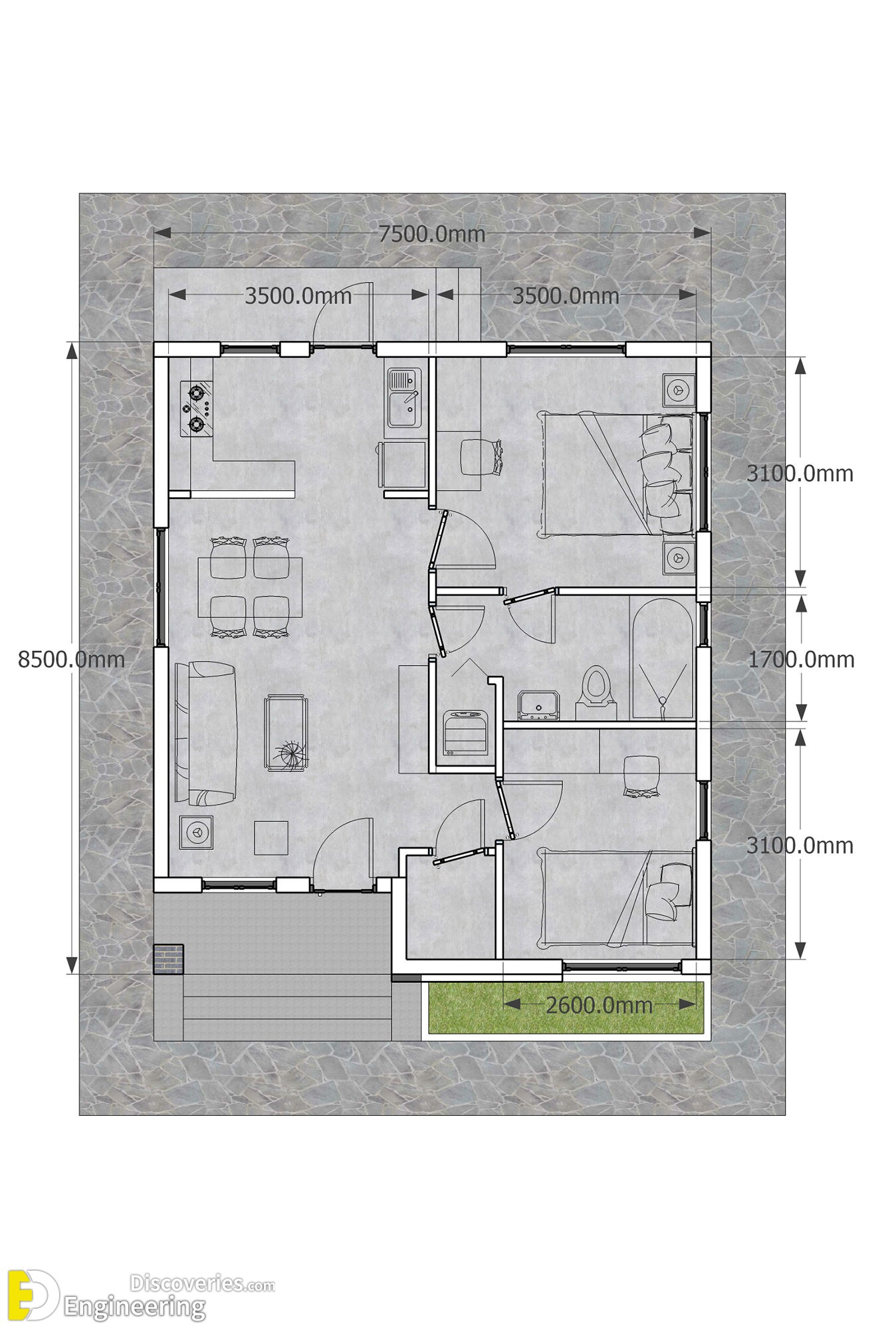 Up next 40 Most Beautiful House Plan Ideas 244 Shares 0 0 0 0 0 0 0 Author Engineering Discoveries Car Parking and garden Living room, Dining room Kitchen 2 Bedrooms, 1 bathroom washing machine in the bathroom Click Here To See More House Design With Plans Share this