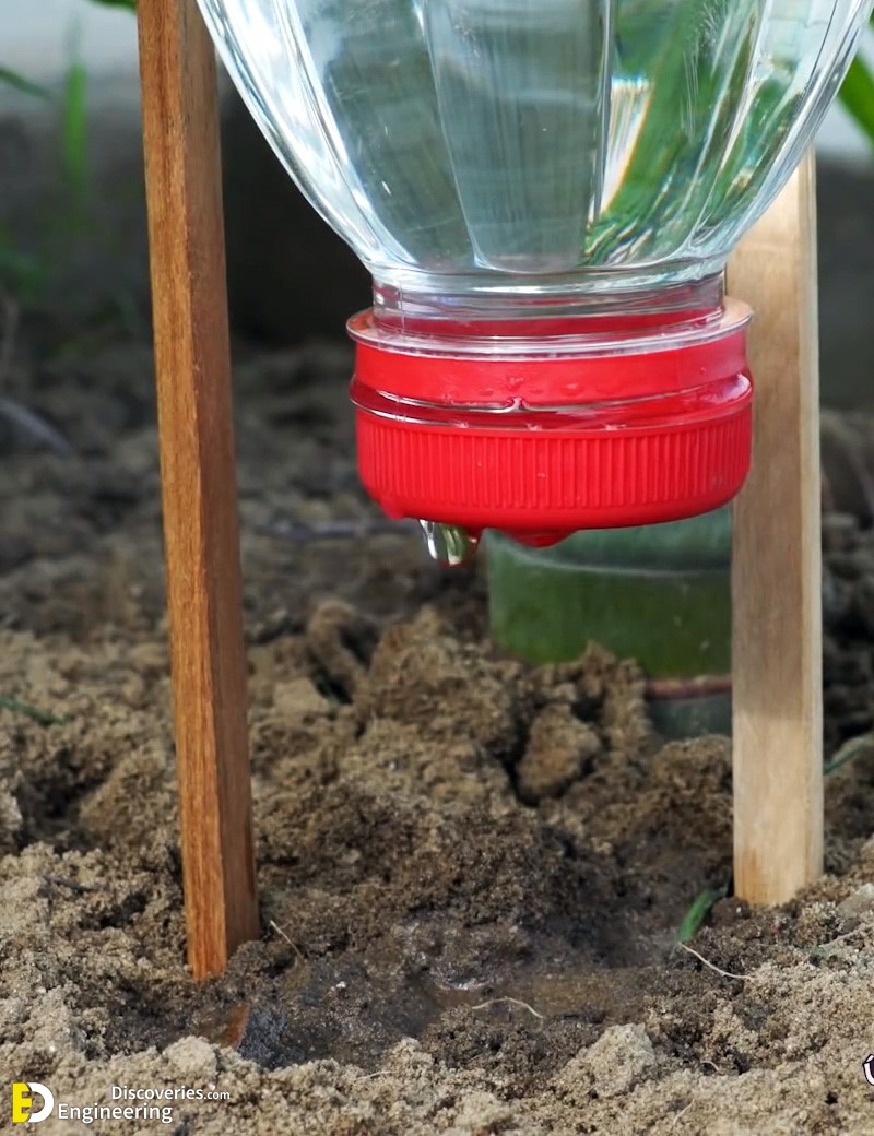 One of the simplest methods of watering plants while you’re away is to fill an empty water bottle with water and then insert it into the soil. Push the neck of the bottle into the soil and give it a little twist. The water will slowly empty into the soil as it’s needed.